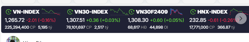 Hôm nay, kết phiên VNI giảm 6.23đ kết 1267.73đ, thanh khoản tầm 13k tỷ (thấp nhất trong 6 phiên qua).