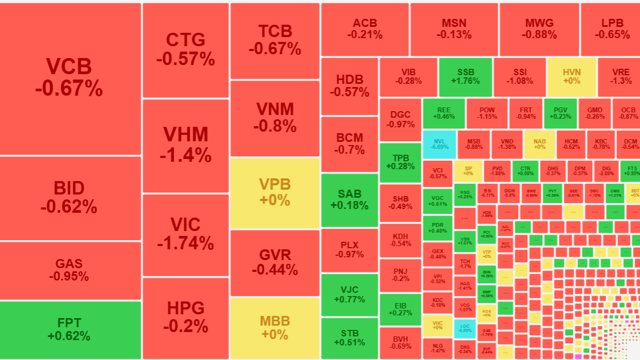 Kết phiên sáng, thị trường giảm 6.82đ (em sắp thở oxy rồi)