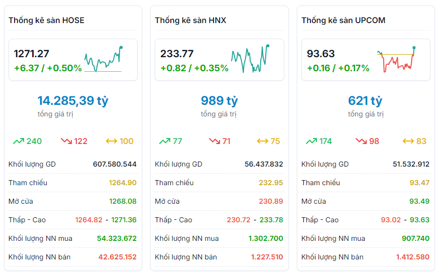 Kết phiên thị trường tăng 6.37đ và nằm trên 1270.
