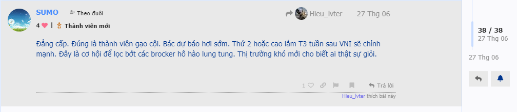 Hi hi. Hôm nay BID giảm so với đỉnh rồi nên không tăng. Chứng tỏ động lượng không mạnh hơn thị trường chung. BID không đi ngược xu hướng chung của thị trường được đâu. BID đang ở điểm giống GAS, PVD… cách đây mấy hôm đó.