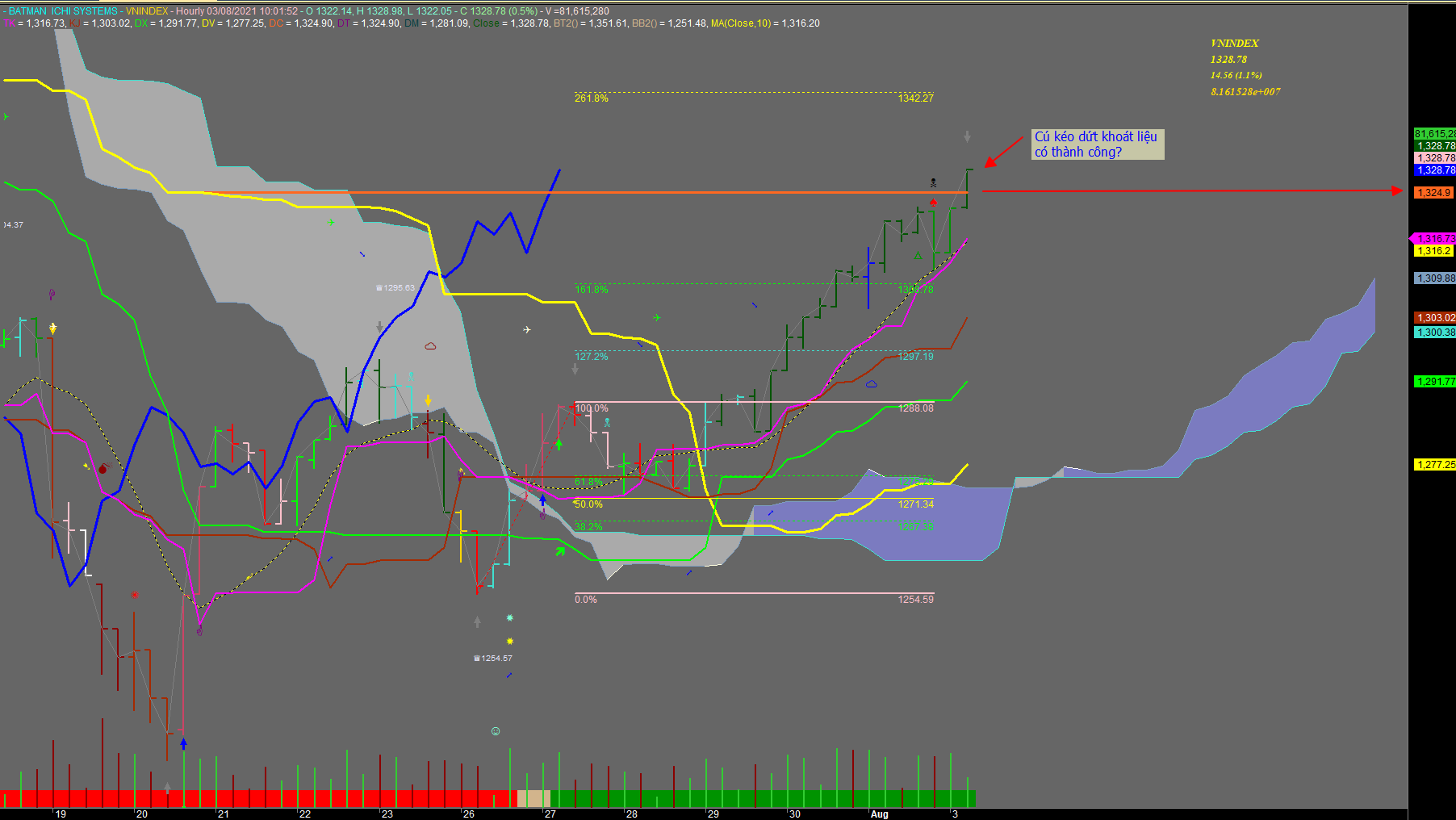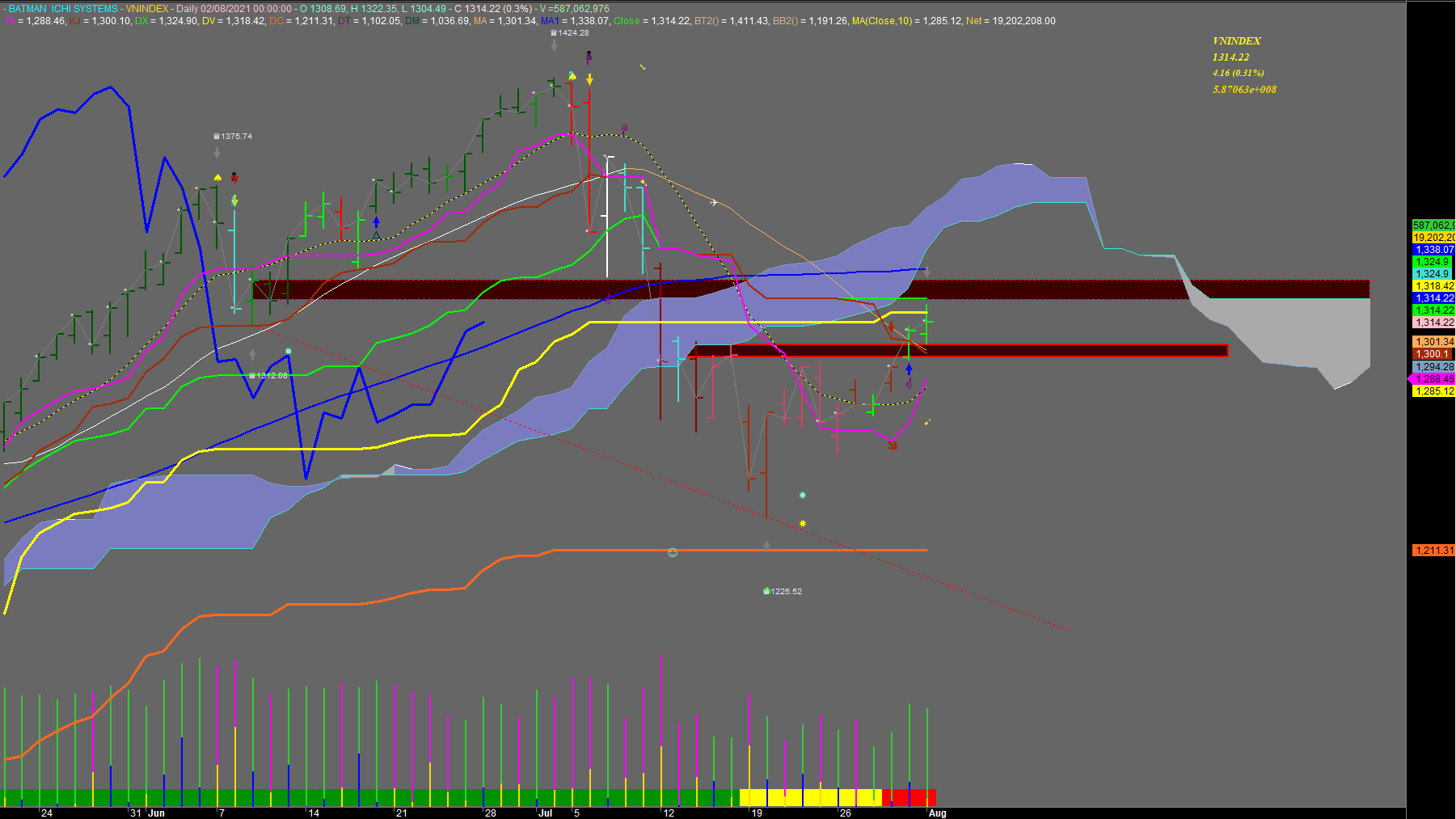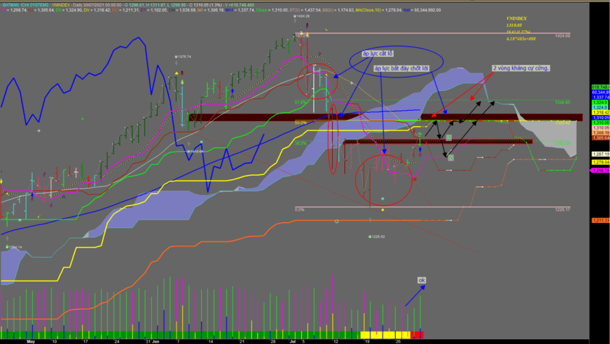 Để giải tỏa áp lực đu đỉnh và bắt đáy sớm của những phiên phía trên và áp lực chốt lời của những phiên bắt đáy phía dưới của các phiên trước VNI cần nhiều thời gian. Nhanh thì giữa tháng 8 còn chậm cuối tháng.