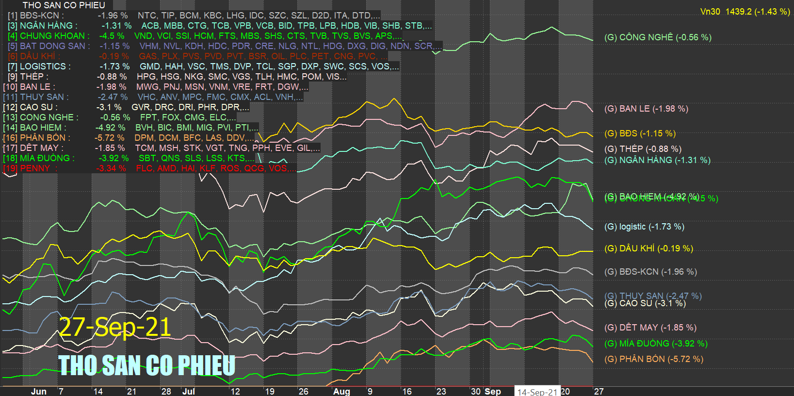 Nhìn chung toàn cảnh thị trường khá xấu, dòng tiền các nhóm đều yếu