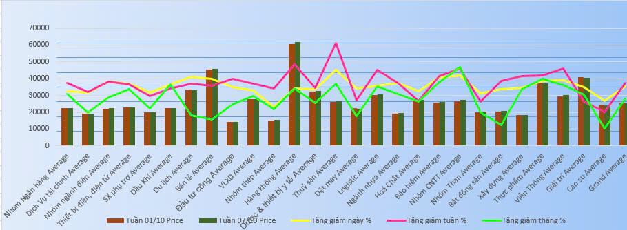 Tăng mạnh có nhóm CNTT với các mã tăng mạnh FPT, CMG, ELC…; Nhóm Thủy sản với ICF, CAT, VHC…; Nhóm bán lẻ với MSN, MWG, FRT…