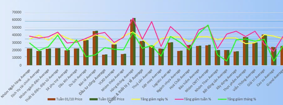 Tăng mạnh nhất có nhóm Thủy sản với ICF, AAM, VHC…; Nhóm viễn thông với VGI, MFS…; Nhóm dịch vụ hàng không với ACV, NCT, HVN…