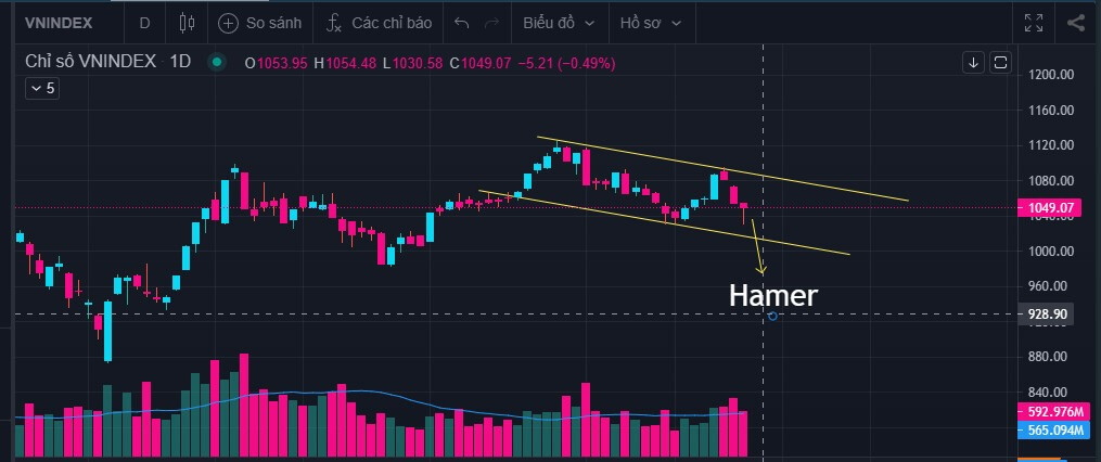 ==> Đóng nến Hamer cân bằng tại vùng trên 1039 ok, Ai có hàng tiếp tục nắm giữ theo dõi có thể báo hiệu đảo chiều xu hướng.