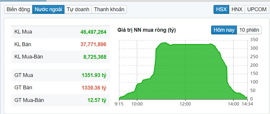Nước ngoài mua mạnh đầu phiên, xả cuối phiên