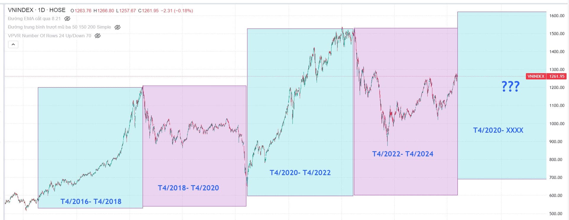 Chu kỳ thị trường chứng khoán được nhiều nhà đầu tư và nhà phân tích quan sát thấy thường kéo dài khoảng bốn năm, quá khứ thị trường chứng khoán Việt Nam cũng tương tự. Liệu 2024 có phải là năm bắt đầu một chu kỳ tăng mới?