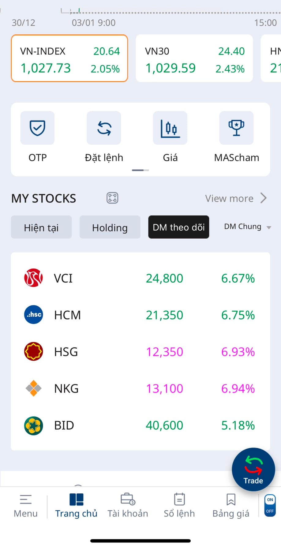 Vnindex mở đầu năm mới khá tích cực, sắc xanh tím ngập tràn bảng điện phiên đầu năm 3/1