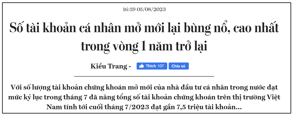 b. Số lượng tài khoản mở mới tăng mạnh mẽ, dòng tiền F0 ồ ạt đổ vào thị trường