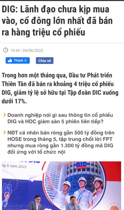 Thiên Tân còn 80 triệu cổ nữa, mỗi tháng Thiên Tân bán vài lần thì cổ đông DIG lại cóng ngay ấy mà