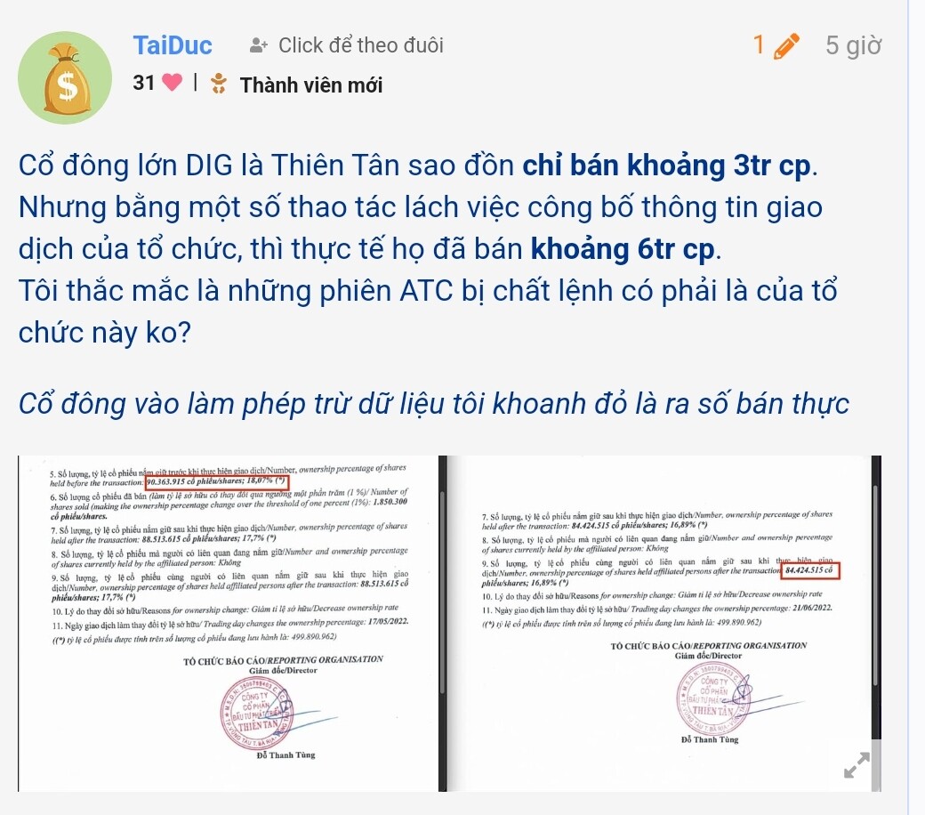 Thiên tân bán sàn là đủ hiểu DIG chỉ đáng giá 10k