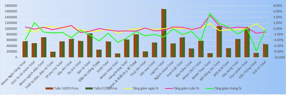 Tuần này nhóm Than đá đang tăng mạnh nhất, tiếp đến nhóm Dầu khí, sau đó nhóm Bank (các mã thị giá nhỏ), nhóm ngành nhựa…