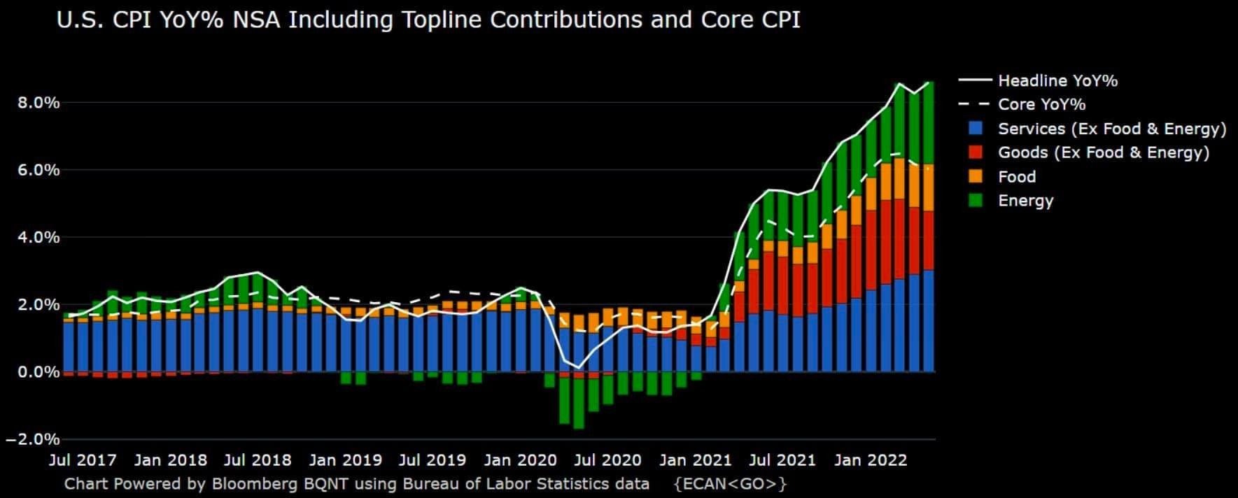 Số liệu từ Bộ Lao động Mỹ, CPI trong tháng 5 cũng tăng 8,6% so với cùng kỳ năm 2021, mức tăng lớn nhất kể từ tháng 12-1981.