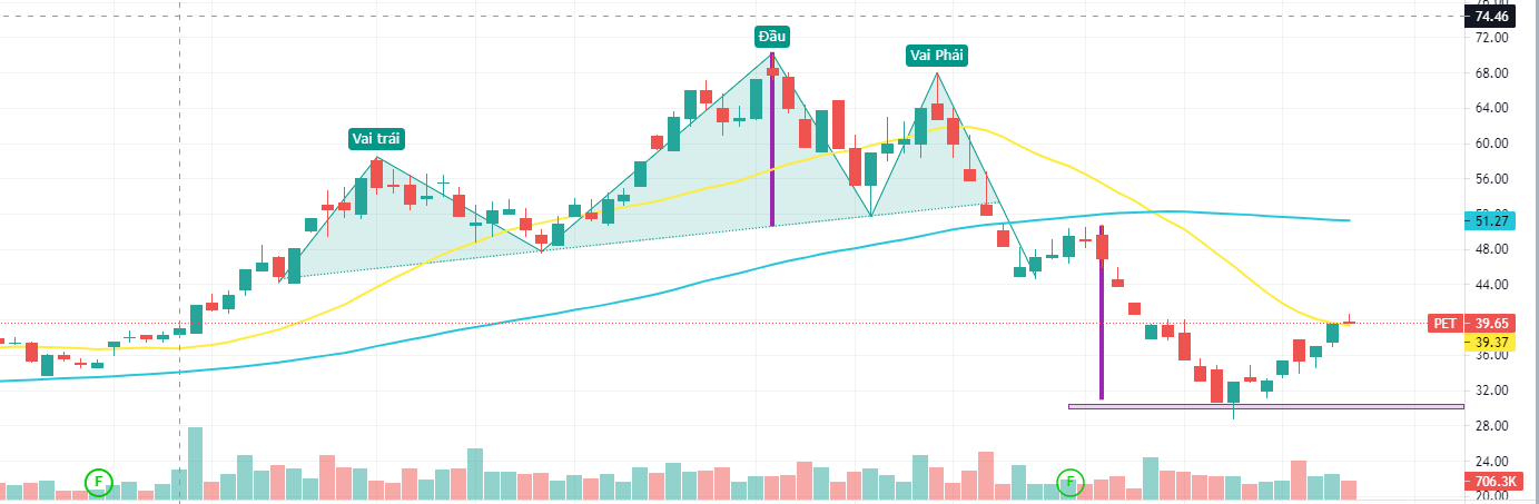 *** PET ( Bán Lẻ + Dầu Khí ): Sau khi chỉnh xong mô hình Vai Đầu Vai, PET đang dần cân bằng lại vùng hỗ trợ MA20.