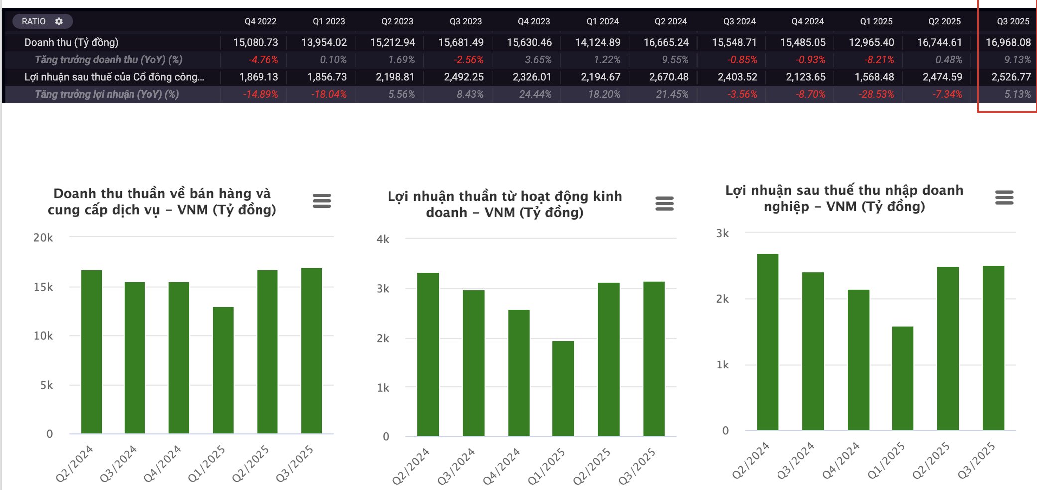 • Doanh thu Q3/2025 đạt 16.953 tỷ đồng (+9,1% YoY)