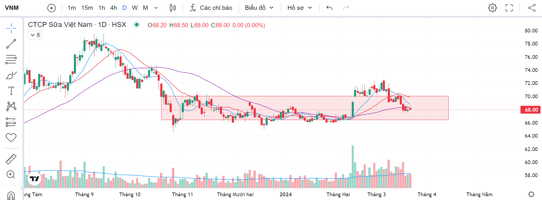 Hình 1 Đồ thị kỹ thuật theo tháng của VNM