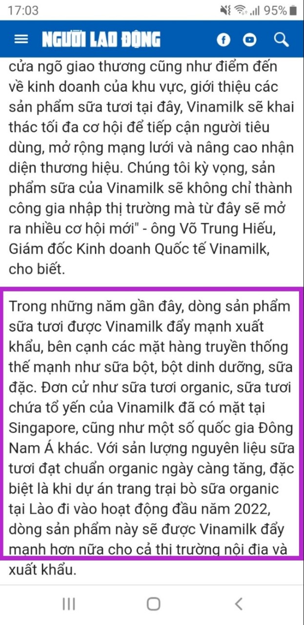 Đặc biệt là khi dự án trang trại bò sữa organic tại Lào đi vào hoạt động đầu năm 2022, dòng sản phẩm này sẽ được Vinamilk đẩy mạnh hơn nữa cho cả thị trường nội địa và xuất khẩu.