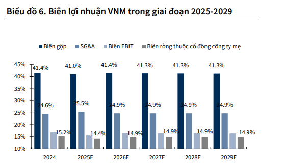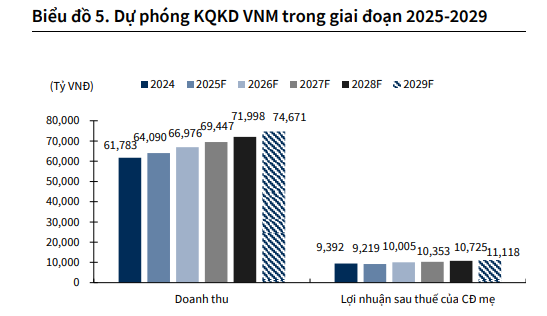Mặc dù năm 2025 được đánh giá là giai đoạn khó khăn với nhiều yếu tố bất lợi, quá trình tái cấu trúc và chuẩn hóa hệ thống phân phối sẽ là nền tảng vững chắc cho Vinamilk trong những năm tiếp theo. Dù tổng lợi nhuận sau thuế dự phóng giai đoạn 2026–2029 bị điều chỉnh giảm khoảng 1,3%, tiềm năng phục hồi từ 2026 trở đi vẫn hiện hữu khi các yếu tố vĩ mô ổn định, tiêu dùng tăng tốc trở lại và doanh nghiệp hoàn thiện tái cấu trúc. Từ đó, Vinamilk có thể duy trì vị thế hàng đầu trong ngành sữa và tiếp tục gia tăng giá trị cho cổ đông trong trung – dài hạn.