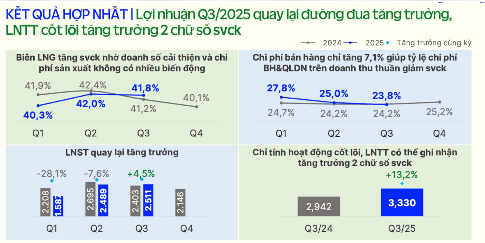 Quý III/2025 đánh dấu một bước chuyển quan trọng của Vinamilk: doanh thu lập đỉnh mới, lợi nhuận quay lại quỹ đạo tăng trưởng.