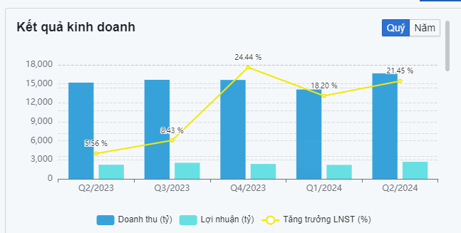 Lợi nhuận gộp: đạt 7.068 tỷ VND, tăng 19,5% so với quý tước và ghi nhận mức tăng 14,9% so với Q2/2023.