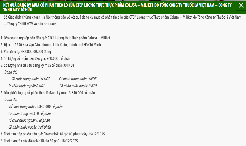 CTCP Giầy Thượng Đình và CTCP Lương thực Thực phẩm Colusa - Miliket đều ghi nhận các phiên đấu giá cổ phần thành công với mức giá trúng bình quân trên 200.000 đồng/cp, bỏ xa thị giá trên UPCoM.