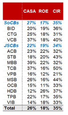 Trong khi đó, VPB chỉ ghi nhận tỷ lệ CASA vào khoảng 15%, thấp hơn so với các ngân hàng top đầu.