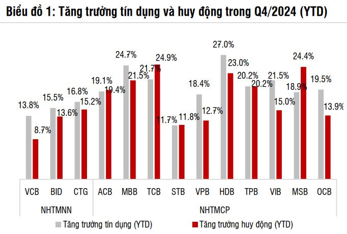 Trong năm 2025, tăng trưởng tín dụng được kỳ vọng vẫn sẽ đến chủ yếu từ khách hàng doanh nghiệp. Tuy nhiên, nhóm khách hàng cá nhân cũng được đánh giá là sẽ đóng góp đáng kể, nhờ vào sự phát triển mạnh mẽ của quá trình số hóa trong ngành ngân hàng. Xu hướng giao dịch online ngày càng phổ biến sẽ thúc đẩy nhu cầu chi tiêu, cũng như tiết kiệm chi phí phát triển cho các ngân hàng.