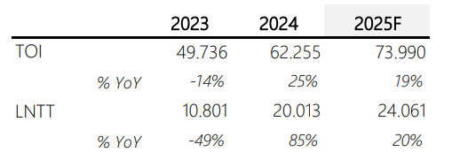 Tính đến hết Q1/2025, TTTD của VPBank đạt 5,4% so với đầu năm, cao hơn mức trung bình toàn ngành 3,9%. Đây là mức tăng tương đương ~25% kế hoạch cả năm, cho thấy động lực tăng trưởng đầu năm khá tích cực, đặc biệt trong bối cảnh ngành ngân hàng vẫn chịu nhiều áp lực từ yếu tố lãi suất và cầu tín dụng yếu.