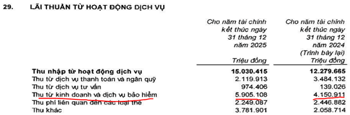 - Hoạt động dịch vụ: Hoạt động dịch vụ của VPB trong năm 2025 phục hồi tốt nhờ chủ yếu từ mảng dịch vụ bảo hiểm phục hồi mạnh trên mức nền thấp cùng kỳ. (Hình 5)