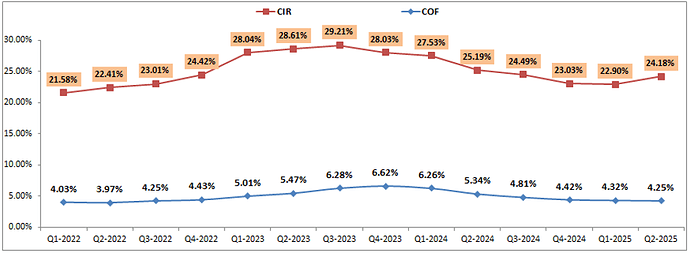 Như vậy dù NIM có phần suy giảm theo xu hướng chung của ngành nhưng chúng ta có thể kỳ vọng tăng trưởng tín dụng ở mức cao sẽ bù đắp được cho NIM của ngân hàng. VPB đã tham gia vào đề án tái cấu trúc ngân hàng yếu kém và hoàn tất quá trình tái cấu trúc PGBank nên có lợi thế lớn là được giao chỉ tiêu tăng trưởng tín dụng ở mức cao. Vì vậy cho cả năm 2025 chúng tôi tin rằng VPB hoàn toàn có thể cán mốc tăng trưởng tín dụng đạt mức 30%.