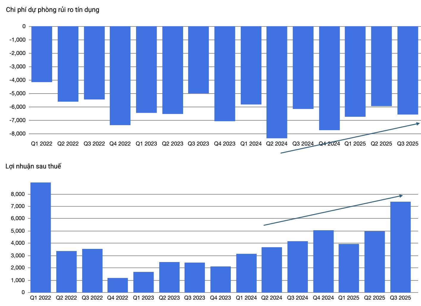 • Chi phí dự phòng rủi ro tín dụng – vốn là “kẻ ăn mòn lợi nhuận” – đã được tiết giảm đáng kể.