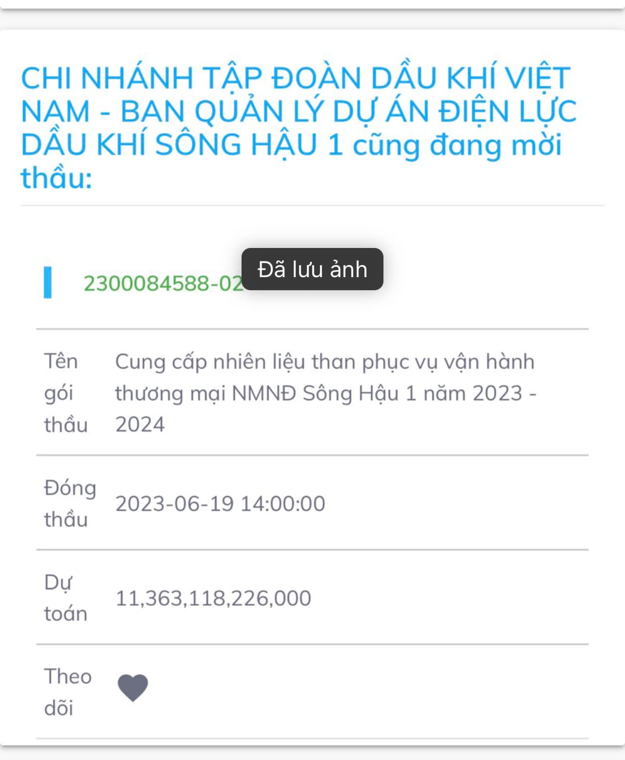 Cụ thể đầu tuần sẽ công bố Sông hậu 1. Nếu trúng thì tạo kì vọng cực lớn. Hợp đồng 11.000 tỉ biên ln 10% thì bay cực cao.