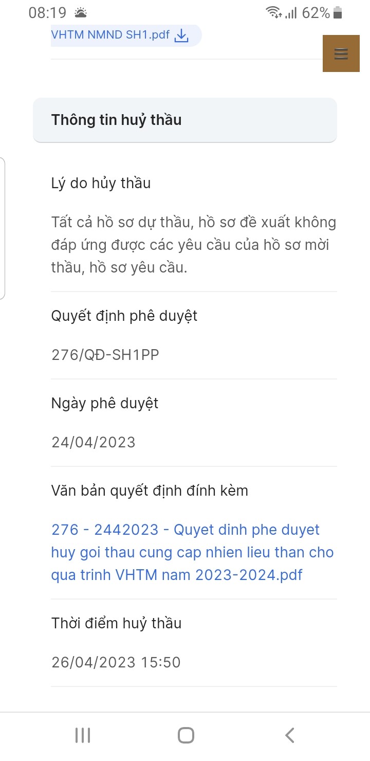 Gói này từ tháng 2/2024 ko có đơn vị nào tham gia nên huỷ thầu.
