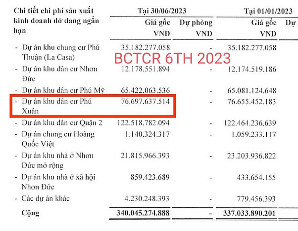 +Tại BCTCR soát xét tháng 6/2023 dự án này đã phát sinh tổng chi phí 122 tỷ được cho là tiền đền bù gpmb và các chi phí khác.