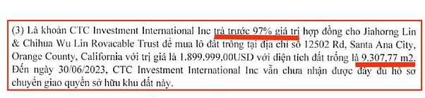 +Tại BCTCHN 6 tháng đầu năm 2023, khoản chi phí trả trước 45 tỷ và khoản phải trả 25 tỷ liên quan đến mua lô đất 0,93ha ở nước ngoài