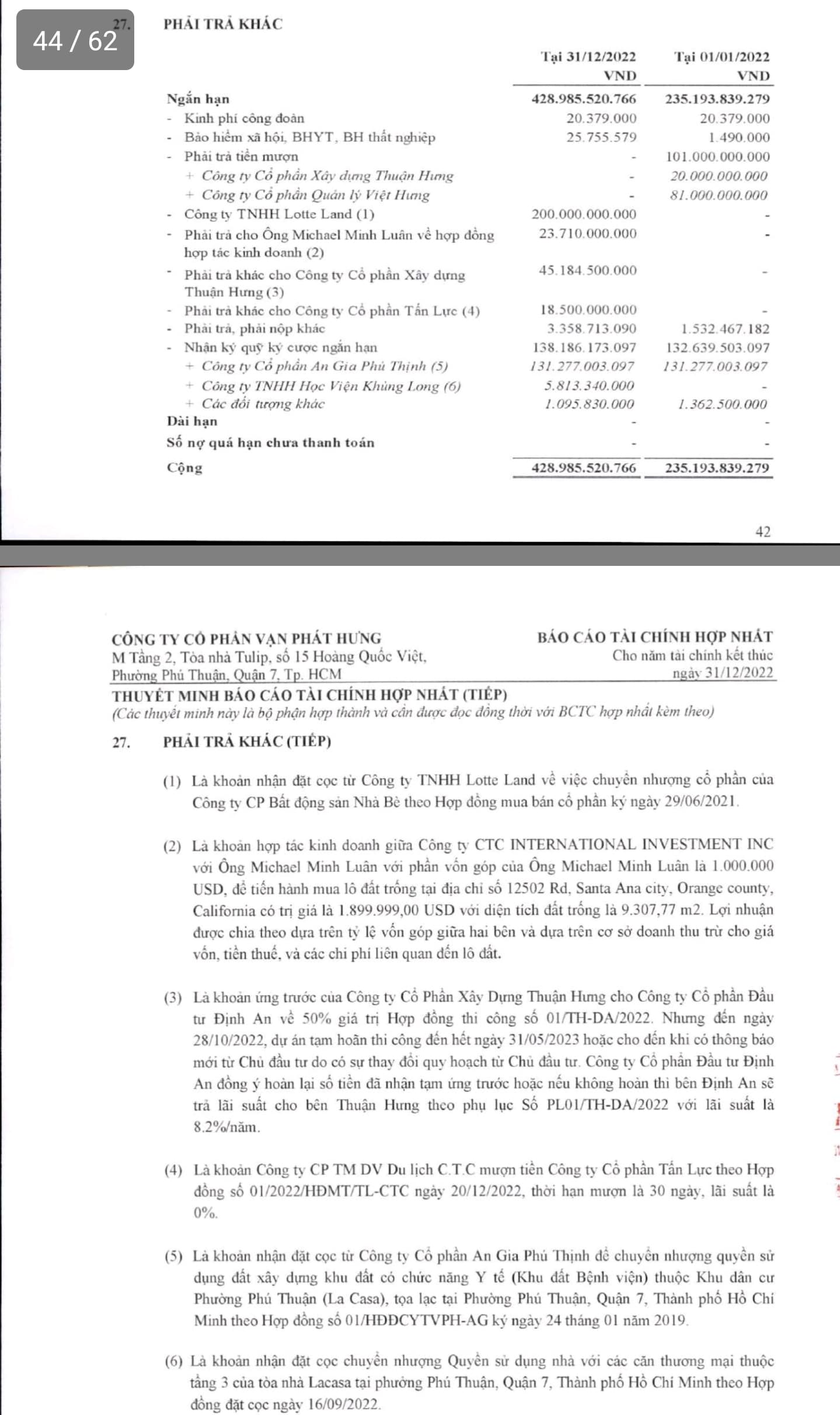 - Đã nhận tiền 200 tỷ của Lotte Land theo BCTC Để nhận chuyển nhượng 55% từ Cty Nhà Bè của VPH.