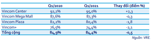 Như vậy với các chiến lược đã được đề ra rõ ràng và vĩ mô ngành ủng hộ, chúng tôi cho rằng đến cuối năm 2021 tỉ lệ lấp đầy các TTTM của VRE sẽ tăng lên tốt hơn so với con số cuối quý 1 là 84.4%