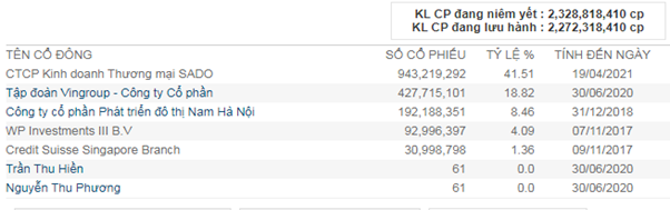 Về doanh nghiệp, chúng ta đều biết VRE là thành viên trong tập đoàn Vingroup, trong cơ cấu cổ đông của VRE thì CTCP KDTM SADO chiếm tỉ lệ lớn nhất với 41.51% và tiếp theo là Vingroup với 18.82%. Tuy là 2 công ty nhưng bản chất thì gần như đều là của Vingroup khi mà SADO là công ty con của Vingroup với tỉ lệ sở hữu lên đến 98%. Như vậy VIC thực nắm VRE với tỉ lệ khoảng 59.5% . (Hình 2)