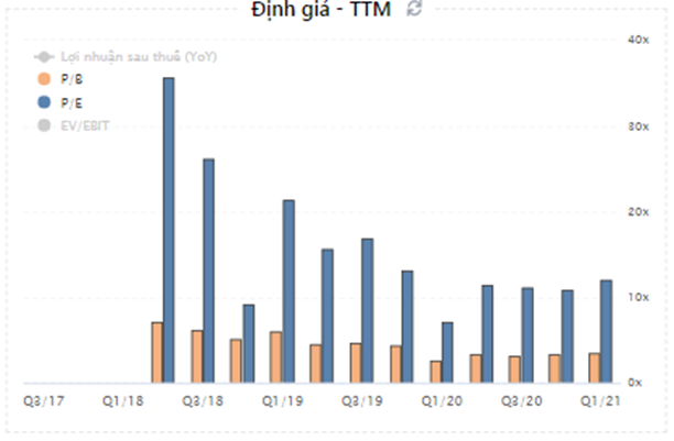 - Từ quý 2-2020 nợ vay của công ty bắt đầu tăng lên từ 2,786 tỷ đồng tại quý 1-2020 lên đến 5,686 tỷ đồng đến cuối quý 1-2021, tức tăng hơn 2 lần trong vòng 1 năm. Dù lượng tiền, tương đương tiền công ty cũng duy trì ở mức cao tương ứng khoảng 4,122 tỷ nhưng cũng cho thấy việc xấu đi của dòng tiền
