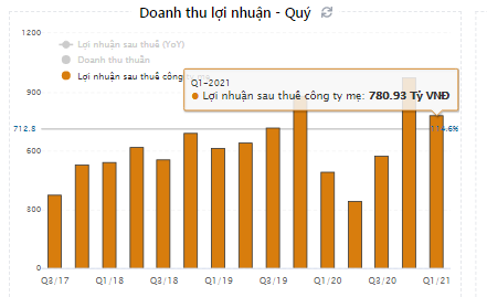 Nhờ biên lợi nhuận gộp cùng doanh thu tăng giúp lợi nhuận sau thuế quý 1-2021 của VRE cũng tăng 58.9% từ 492 tỷ lên 780.9 tỷ. Đây là con số cao nhất mà VRE đạt được trong quý 1 kể từ khi lên sàn đến nay, chỉ đứng sau quý 4 của năm 2019,2020 (Quý cao điểm ngành BĐS). Vậy tiềm năng các quý tới ra sao chúng tôi sẽ phân tích chi tiết trong phần dưới của bài viết. (Hình 7)