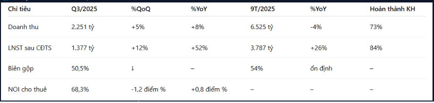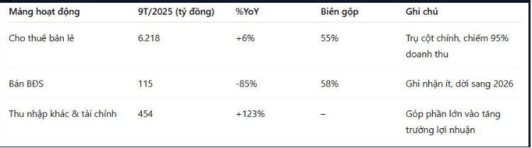 Mảng cho thuê vẫn giữ tốc độ ổn định, trong khi thu nhập tài chính là động lực chính giúp LNST bật mạnh trong năm 2025.