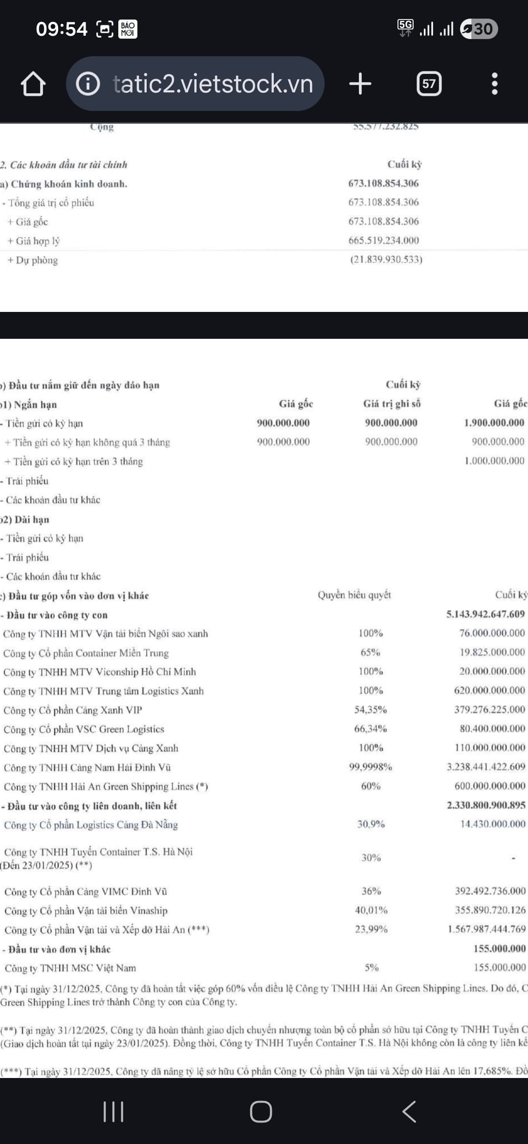 Năm 2025. Vsc đã thâu tóm và hợp nhất Cty TNHH cảng Nam Hải Đình Vũ với tỷ lệ kiểm soát 99,9%, mức vốn góp theo bctc 2025 hơn 3.200 tỏi, đây là khoản đầu tư lớn nhất của VSC. Năm 2024 cảng này vẫn còn thua lỗ thì năm 2025 lãi 145 tỏi. Theo đánh giá của Bộ công thương, cảng này ngày càng có vị trí chiến lược, năng lực ngày càng lớn. Xếp hạng cao.