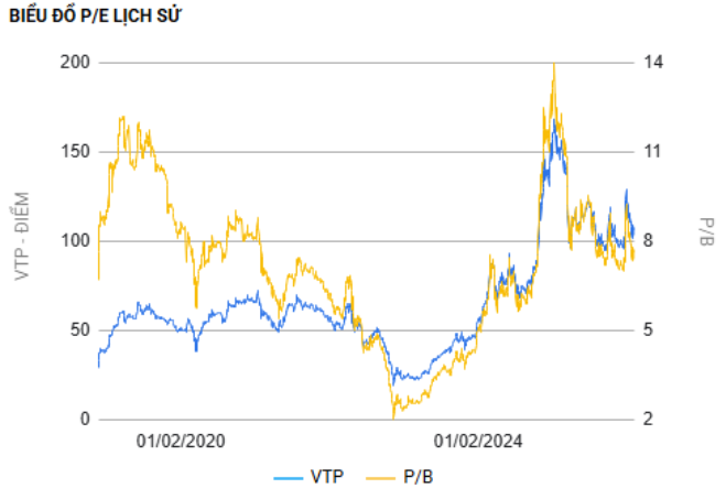 - Trong bối cảnh thị trường giao dịch tốt, LNST tăng trưởng từ 10 – 20% trong năm 2026: đây là kịch bản chúng tôi cho rằng xác suất xảy ra cao hơn. Với kịch bản này, VTP sẽ đi quanh vùng PE fwd khoảng 25 – 30 lần là phù hợp. Giá cổ phiếu sẽ dao động ở vùng 80 – 120k/ cổ trong năm nay với mức định giá này nếu thị trường giữ được thanh khoản tốt.