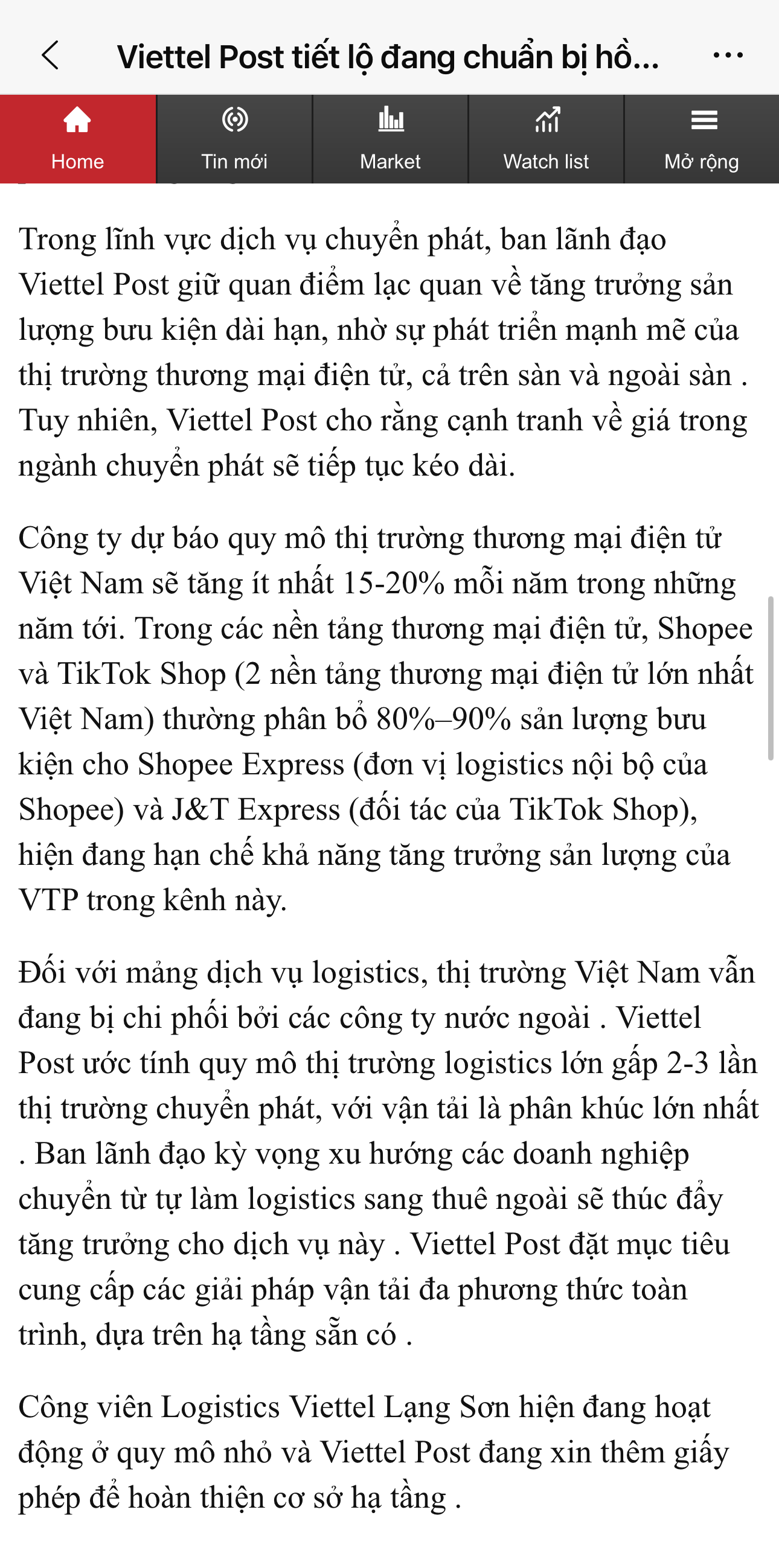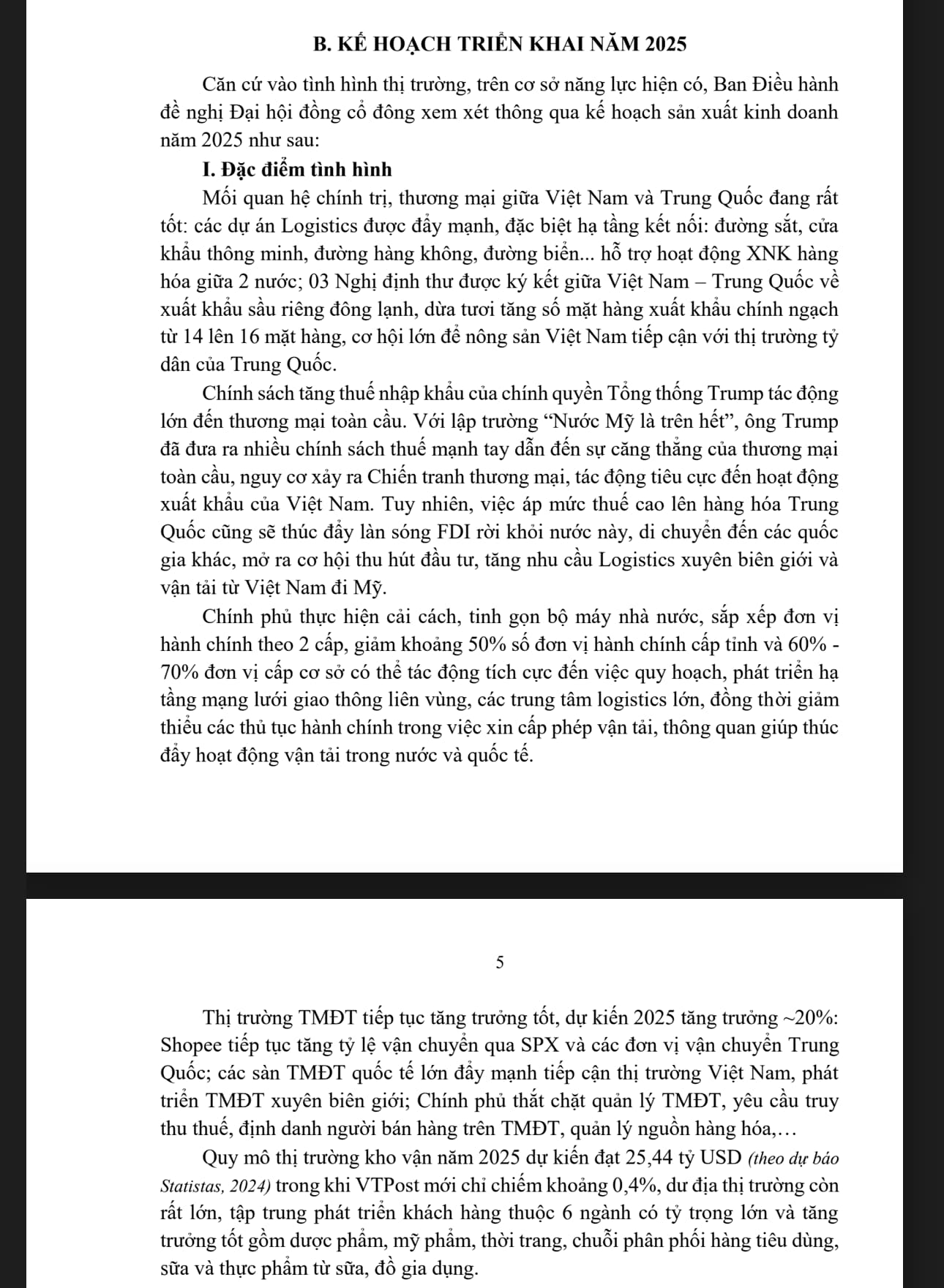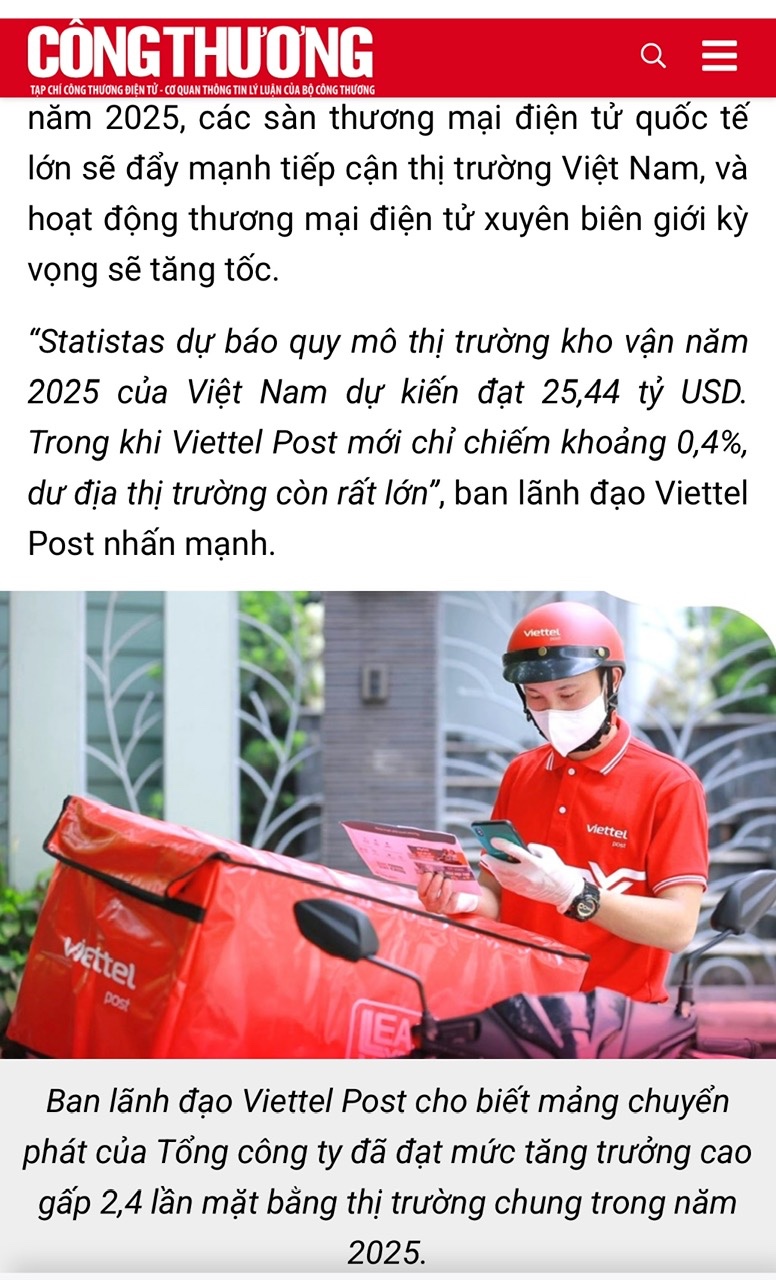 Công ty dự báo quy mô thị trường thương mại điện tử Việt Nam sẽ tăng ít nhất 15-20% mỗi năm trong những năm tới. Trong các nền tảng thương mại điện tử, Shopee và TikTok Shop (2 nền tảng thương mại điện tử lớn nhất Việt Nam) thường phân bổ 80%–90% sản lượng bưu kiện cho Shopee Express (đơn vị logistics nội bộ của Shopee) và J&T Express (đối tác của TikTok Shop)