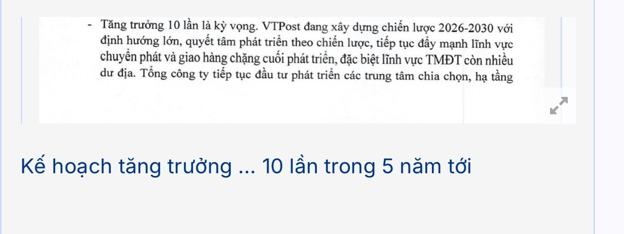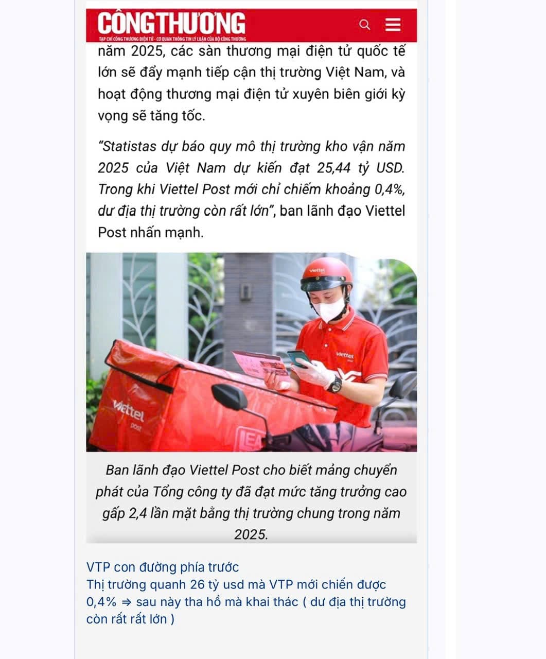 Xu hướng phát triển thương mại điện tử, số hoá trên toàn cầu là điều tất yêu, mà VTP ngần như độc quyền ( lợi thế rất lớn ), thời đại chuyển đổi số, mọi hàng hoá đều có mã số số vạch