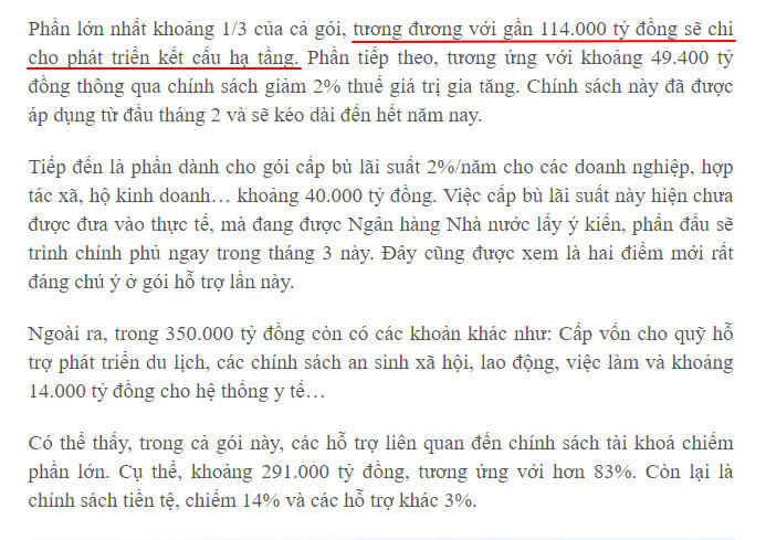 Cộng với 114k tỷ trong gói 350k tỷ này nữa. Xấp xỉ 3 triệu tỷ đồng trong 5 năm