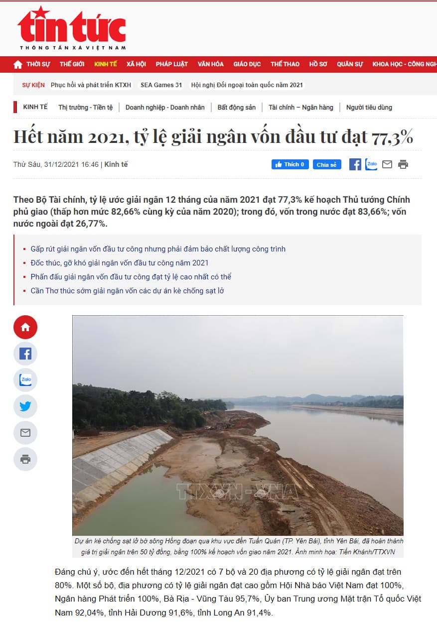 Tính đến 30/5/2022 Vốn giải ngân cho đầu tư công đạt 22% nhiệm vụ giao đầu năm. Trong khi 2021 đã không hoàn thành giải ngân kế hoạch năm.