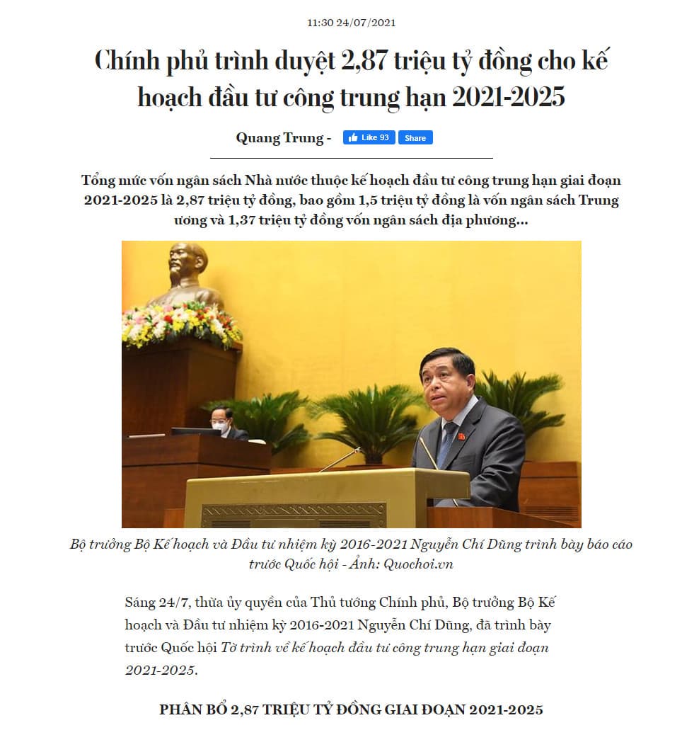 2021-2025 đã duyệt 2,87 triệu tỷ đồng đầu tư công trung hạn