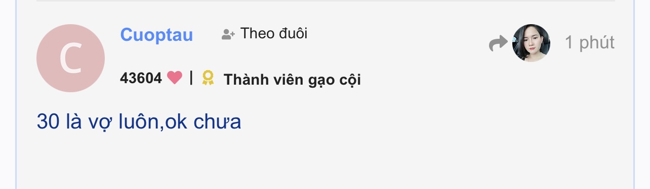 30 là vợ luôn,ok chưa