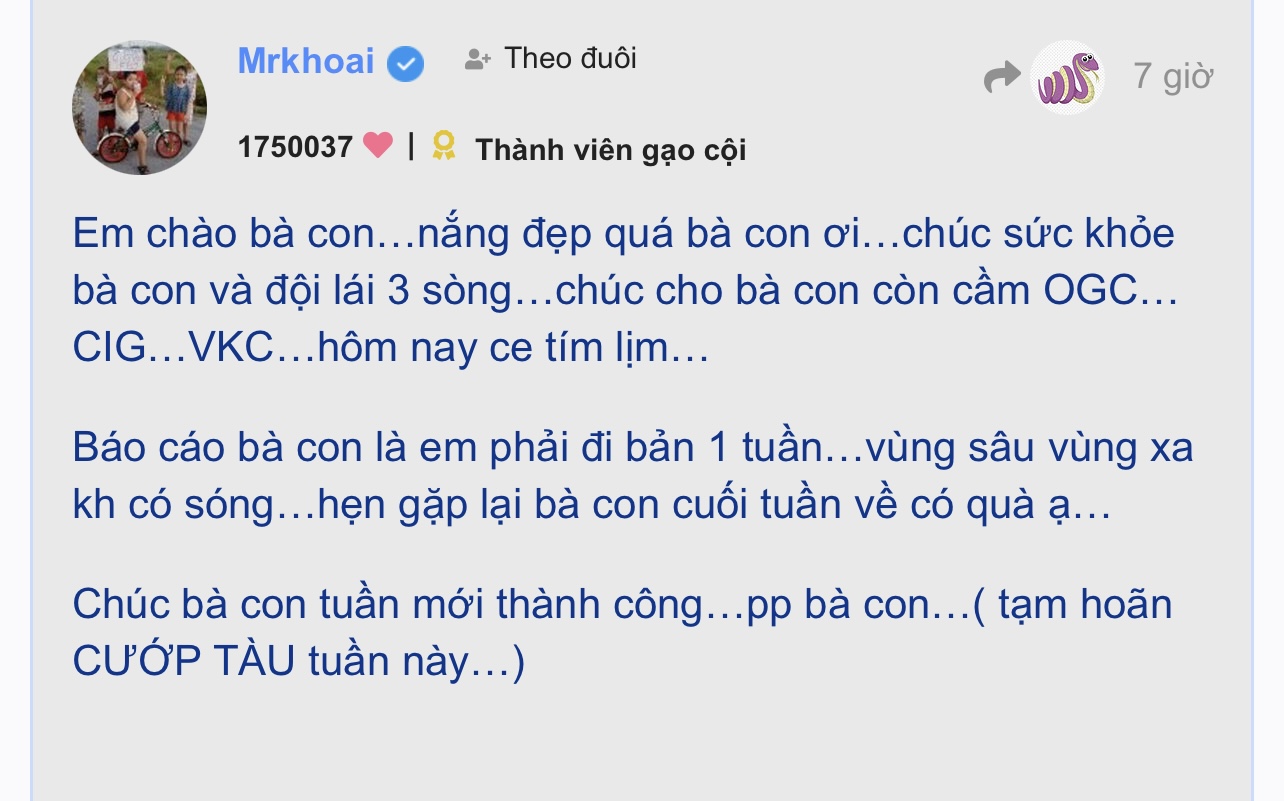 bác khoai họp bản cả tuần nên tuần nay k có tàu bác ưi.